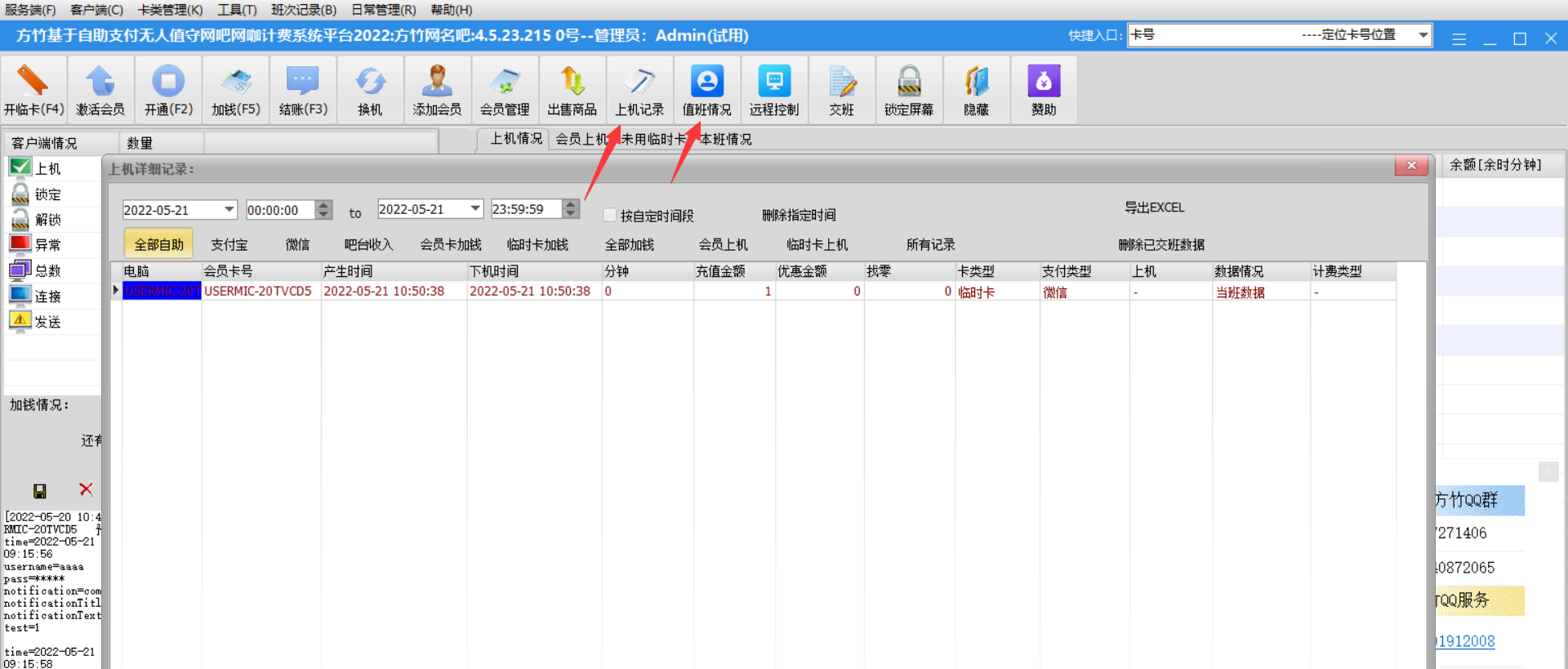 用手机和方竹计费配合实现自助支付,打造网吧无人值守收费系统,对于小网吧,可以节约一笔工资钱。方法: 手机安装好方竹收款助手APP后,要进行一些权限设置:1:应用权限 存储空间 允许读写2:通知管理 允许通知3:允许自动启动 允许4:耗电保护 允许后台运行这样手机APP就设置好了。1:注册方竹论坛。2:在APP设置中填写好你的方竹论坛账号和密码。3:收费机:登录论坛-》点我的-》复制注册码去收费机注册。4:在APP设置中填写收费机IP地址。5:收费机和APP同在一个局域网网段。完成上面几个步骤后,手机APP就可以点测试连接上收费机了。下图设置正常能工作的:APP正常工作后,就可以取收款二维码加入收费机中,详细的方法请打开下面链接:详细看这里技巧:随着手机的普及,手机上安装的应用越来越多,手机厂商为了加长手机待机时间,对于后台运行应用限制也越来越多,我们总有些应用需要后台运行,保持一直后台运行,由于各种手要不同,如果设置应用程序一直后台运行,可以根据手机型号百度搜索一下。请看,新版的APP可以远程手机查账。