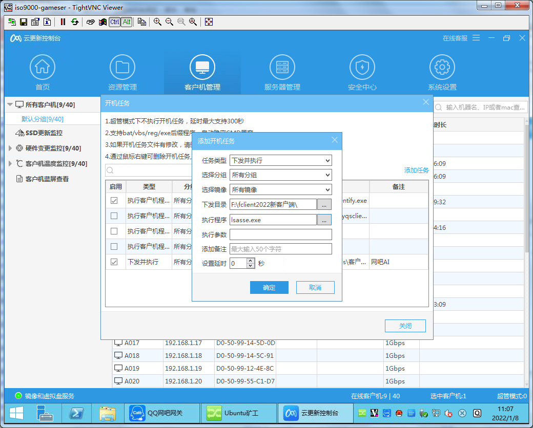 无盘安装方竹客户端,看视频:下载解后,把客户端目录复制到无盘游戏服务器盘上,然后设置一下收费端IP址见下图:然后设置好下发运行:即可。更详细的看一下视频:方竹客户端无盘下安装方法手机上收款码图片制作方法客户端卸载方法:知道无盘客户端安装方法,那卸载也就简单了,以相反的方法(在无盘服务器上删除客户端文件)即可。无盘如果不能下发,可以放在游戏盘上,然后设置lasse.exe自动运行即可。
