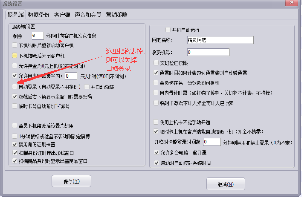 收费机在启动时,可以在下图打钩为自动登录,这样不用每次输入密码注意:自动登录是不能交班的,要交班就不能自动登录。如果关掉,可以进入系统设置,在下图中把钩去掉,就可以关掉了。