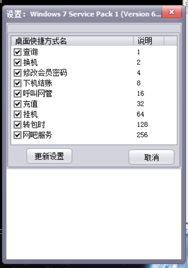 新客户端由于无进程,所以对一些检查系统安全的游戏如穿越火线、DNF、英雄联盟、租号程序等不会影响了。在使用中有什么问题随时联系反馈!建议大家使用新客户端。新客户端桌面图标直接运行客户端“生成桌面图标.bat”或 finime.bat 批处理来设置需要的桌面图标如下图:需要打钩,打好钩后直接点“更新设置”即可。可以直接在无盘服务器上运行设置。设置好后,客户端后记就会有图标显示出来了。关于系统设置及主题编辑,可以运行客户端的fzset.exe设置即可。