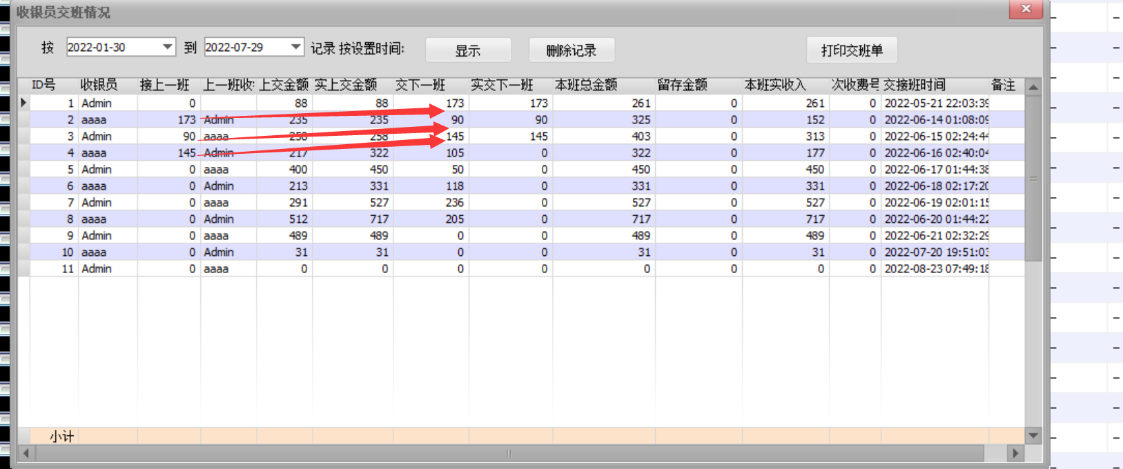 这个表最容易明白了。你只关心“接上一班”“实上交金额”,“实交下一班”就可以了。1:接上一班,就是上一班除去上交金额后,剩余的金额,如没有下机的押金,正在上机的金额,这些顾客没有下机结账,你不能上交,只能贸下一班处理。2:实上交金额:就是这个班已结账的金额,是实际收入。3:实交下一班,看第一点说明。